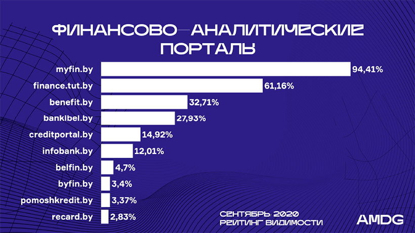 Четверка лидеров за август и сентябрь приросла в видимости и сохранила свои места: Myfin.by – +4,58%, Bankibel.by – +5,83%, Finance***by и Benefit.by – в среднем +0,45%.
