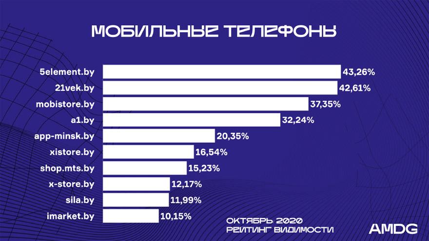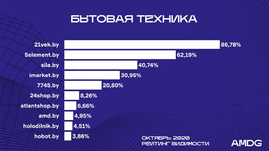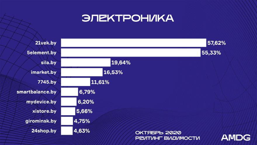 В пятерку лучших, как и прежде, входит 21vek.by, 5element.by, Sila.by, Imarket.by и 7745.by.