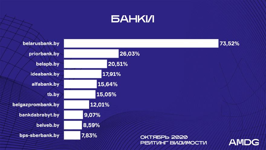 Из-за значительного падения (на 12,4%) Amd.by опустился на 10-е место: яркий взлет в сентябре не нашел продолжения в октябре.