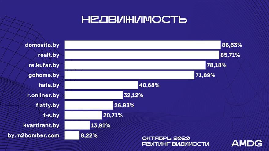 Как и ранее, ТОП-3: Domovita.by (86,53%), Realt.by (85,71%), Re.kufar.by (78,18%).