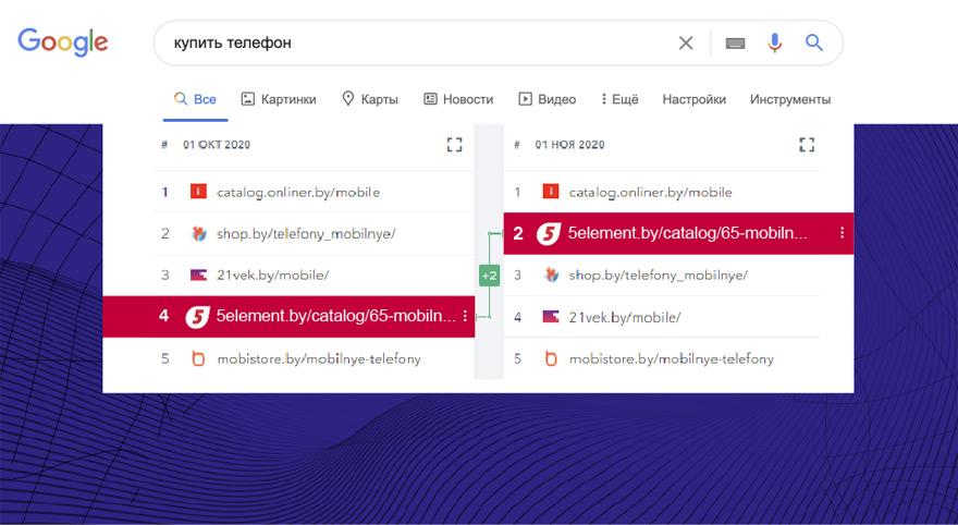 5element.by впервые поднялся на 1-ю строку. Прежний лидер – 21vek.by – оказался на 2-й позиции.