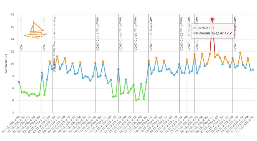 За октябрь было зафиксировано одно крупное изменение выдачи в Яндексе.