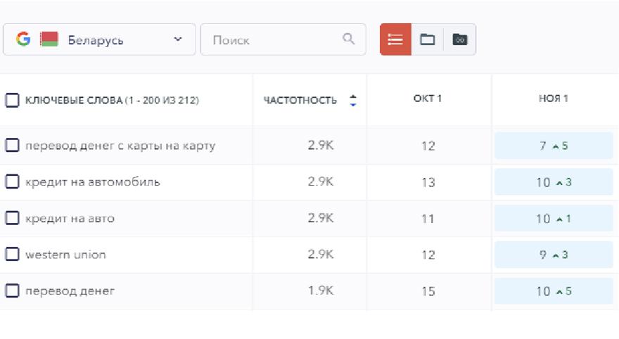 Банк БелВЭБ значительно прибавляет в сравнении с конкурентами (+4,3%). Рост по многим частотным запросам в Google позволяет шагнуть с 12-й на 9-ю строку.