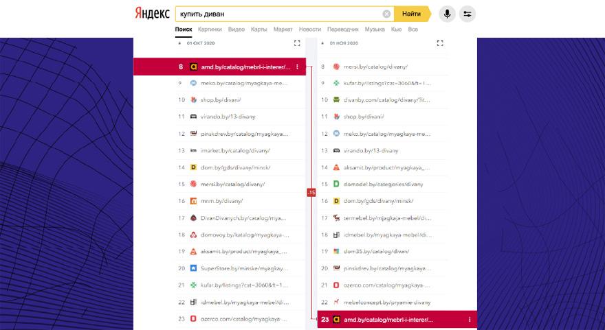 Digital-агентство AMDG составило рейтинг видимости белорусских брендов за октябрь, и исследуемые сайты и поисковые системы продолжают удивлять. Резкий взлет Imarket.by в шести из одиннадцати категорий, такое же резкое снижение Amd.by, смена лидера в сфере мобильных телефонов впервые за 5 месяцев. По наблюдениям экспертов AMDG, все крупные перемены в рейтинге связаны с изменениями выдачи в Яндексе. Подробнее в новом рейтинге видимости сайтов.