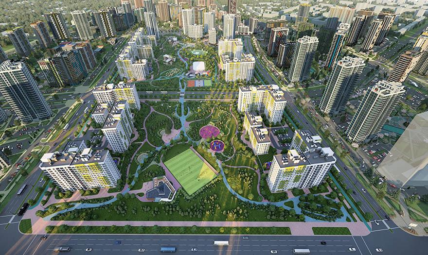 В скором времени здесь появится самый большой в стране торгово-развлекательный центр с паркингом, шикарный парк со скульптурами, зонами отдыха, аттракционами и фонтанами, и Международный финансовый центр.