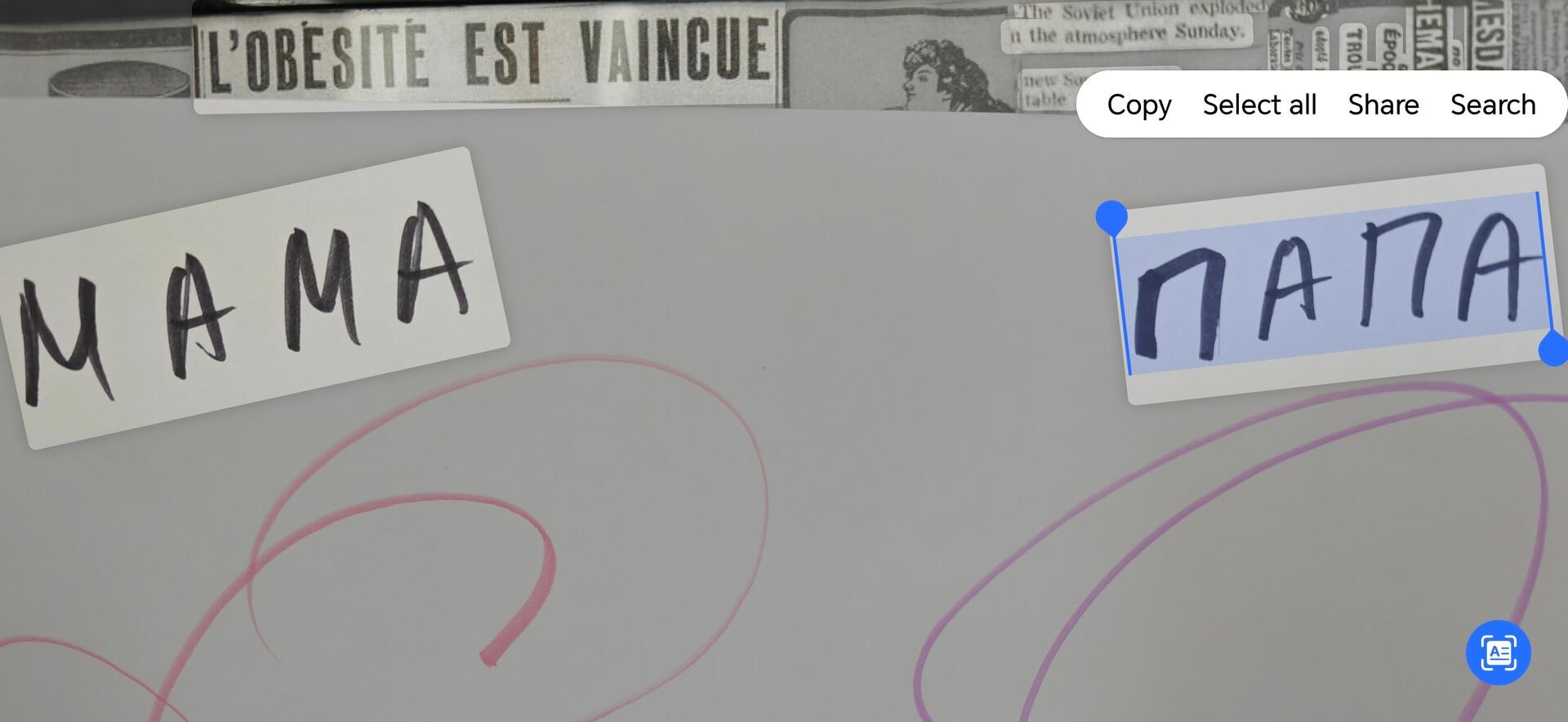 Функция Magic Text умеет распознавать текст на изображениях, в том числе рукописный. Например, можно сфотографировать написанный от руки на бумаге номер телефона, система его распознает и предложит позвонить или сохранить новый контакт. Помимо обычного текста и цифр также распознаются ссылки и адреса электронной почты.