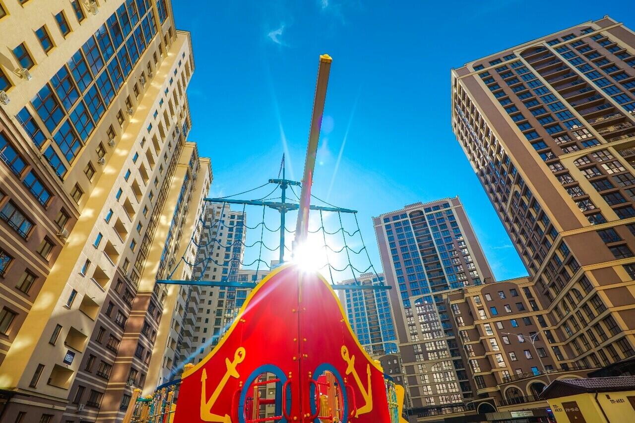 На прилегающих территориях есть чудесные детские площадки, где всё продумано для весёлых игр детворы: эти городки экологичны и безопасны (мягкое гудроновое покрытие). Обустроены скамейки для отдыха, пешеходные зоны, где работают магазины и бутики. Вы также можете успешно стартовать в коммерческой инфраструктуре комплекса, получая прибыль от бизнеса!