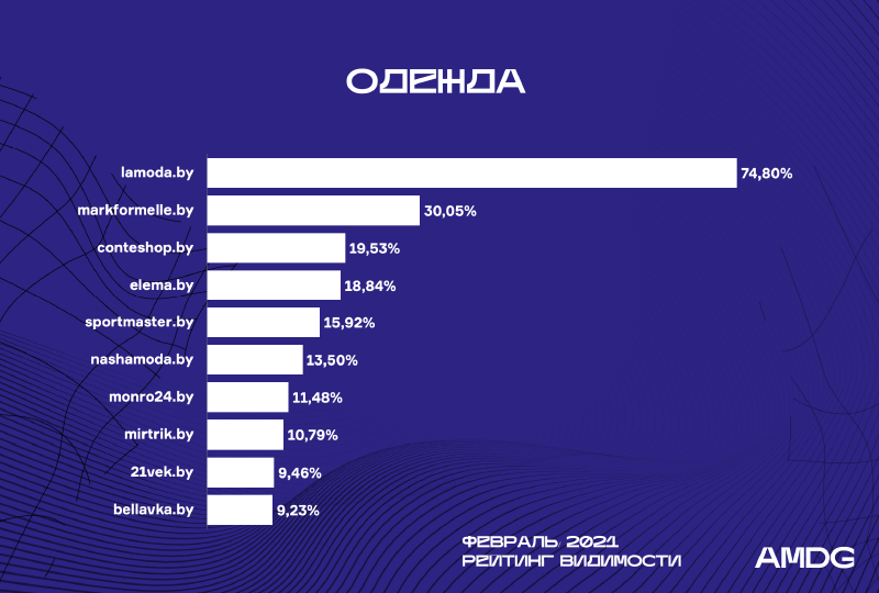 Imarket.by – один из лидеров января – спускается с 10-й на 17-ю строку (-3,63%). Его место занимает Voltra.by, который прыгнул с 20-й строки на 10-ю с ростом видимости на 5,07%