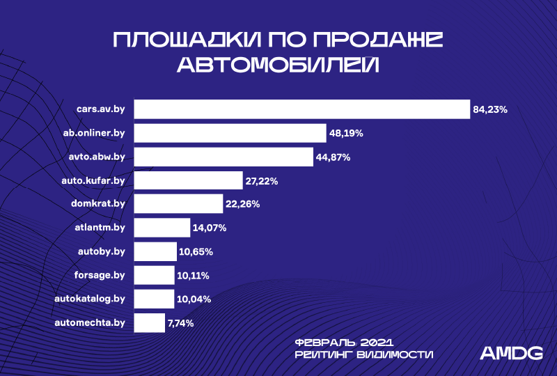 Autoby.by смещается вниз на две позиции. Причина – снижение видимости (- 9,2%).