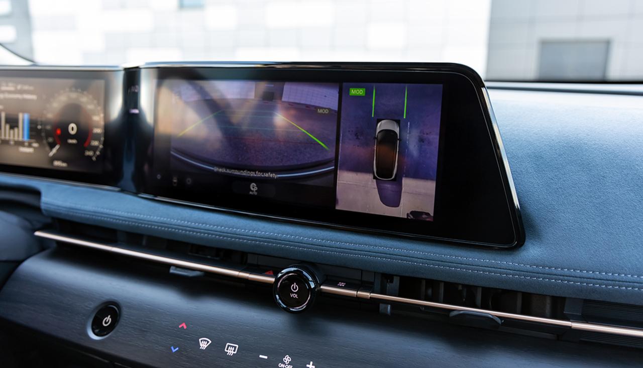 - Внутри салона – премиум-ткань, двухзонный климат-контроль, 12,3 дюймовый сенсорный HD-экран.
