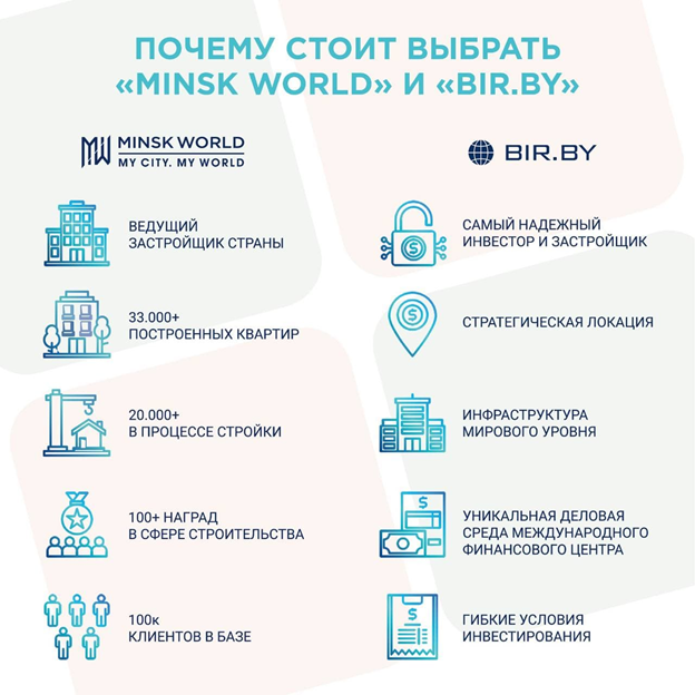Эксперты рынка советуют обращать внимание на проекты крупных застройщиков, например, многофункциональные комплексы. В этом смысле Minsk World – идеальный вариант! Покупая квартиру здесь, клиент может на себе ощутить такие преимущества как транспортная доступность и развитая инфраструктура.