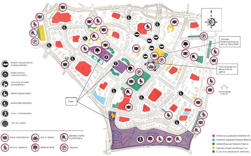 Например, внутри квартала «Евразия» запроектирован детский сад, игровые и спортивные площадки, велосипедные парковки, зелёные зоны для отдыха и выгула домашних животных. В пешей доступности появятся школы, взрослая и детская поликлиники, медицинский центр, магазины, спортзалы и кафе.