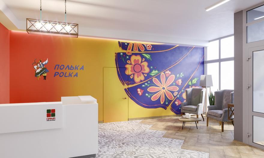 В доме «Полька» яркий и насыщенный интерьер с интересными цветовыми акцентами. Такой же энергичный, как сам танец.