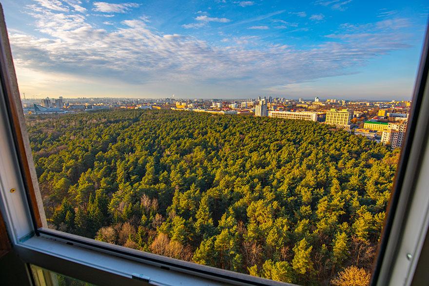 Впечатлила ребят и зелёная зона. С 12 этажа, где находится их квартира, открывается шикарный вид на парк.
