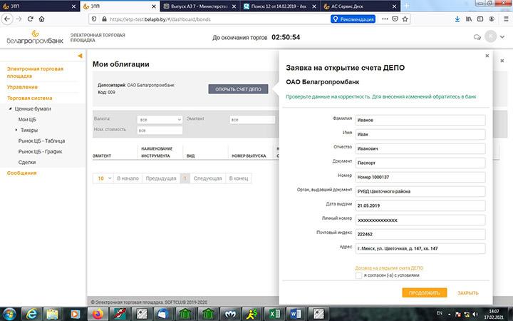 В интернет-банкинге Белагропромбанка нужно открыть текущий счет для расчетов по сделкам и получения выплат по облигациям.
