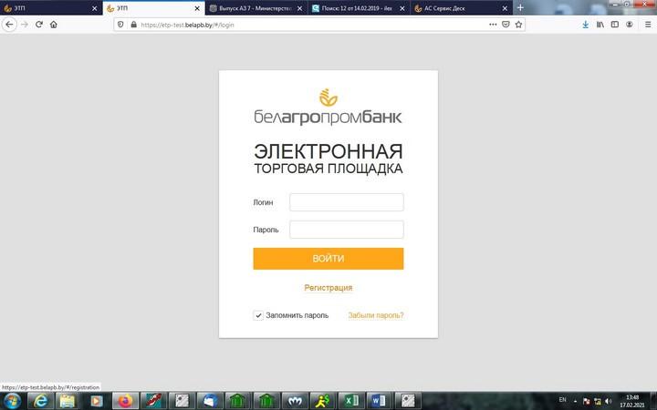 Далее необходимо перейти по ссылке и пройти процедуру регистрации в ПК «Электронная торговая площадка».