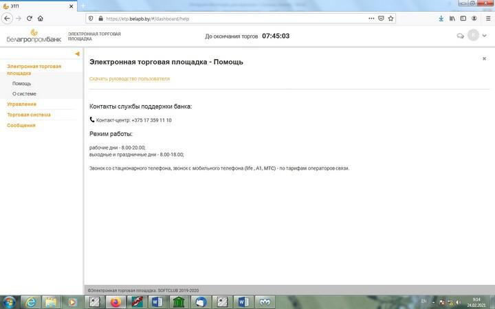 Во вкладке «Помощь» Вы сможете найти Руководство пользователя, контактный номер и режим работы службы поддержки.
