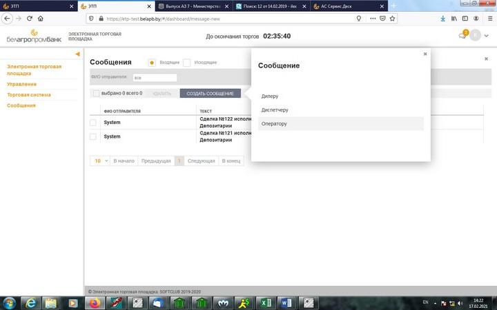 В случае возникновения вопросов в процессе работы с ЭТП Вы можете общаться с банком не только по телефону службы поддержки, но и посредством вкладки «Сообщения».