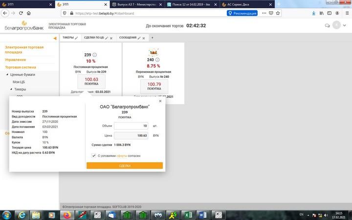 Из банков дистанционное размещение облигаций посредством ЭТП на сегодня осуществляет только Белагропромбанк. ЭТП – это уникальный, не имеющий аналогов программный комплекс, который обеспечивает осуществление всех операций по приобретению облигаций в режиме онлайн. Процесс приобретения облигаций от нажатия кнопки «Сделка» до зачисления ценных бумаг на счет «депо» его владельца занимает всего несколько секунд.