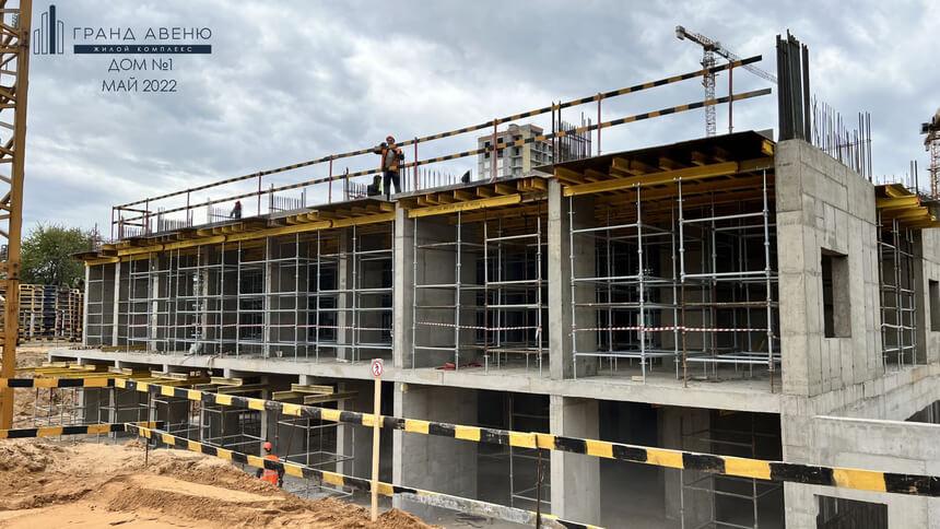 Сегодня идет возведение 5-го этажа. Построен 1 этаж, где расположатся коммерческие помещения и 2-4 жилой этаж. Сейчас идут работы по установке опалубки и возведению 5-го жилого этажа.