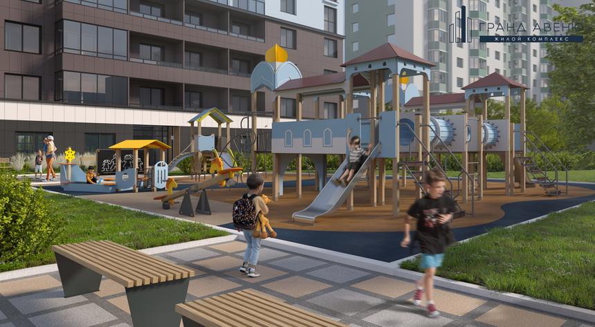 Детская площадка в комплексе отвечает всем мерам безопасности. Основание площадки будет с использованием антитравматического покрытия, а игровое оборудование будет зонировано таким образом, чтобы дети разных возрастов не мешали друг другу.