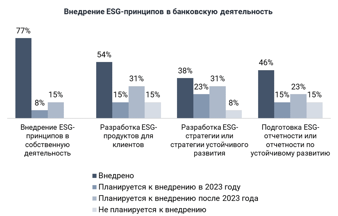 - Развитие ESG-повестки внутри банка на протяжении ближайшего года планируют 77% респондентов.