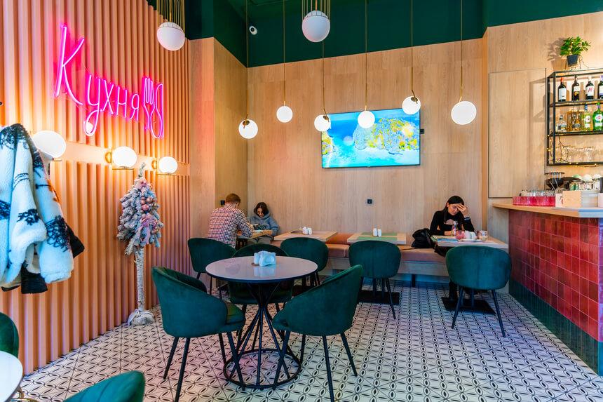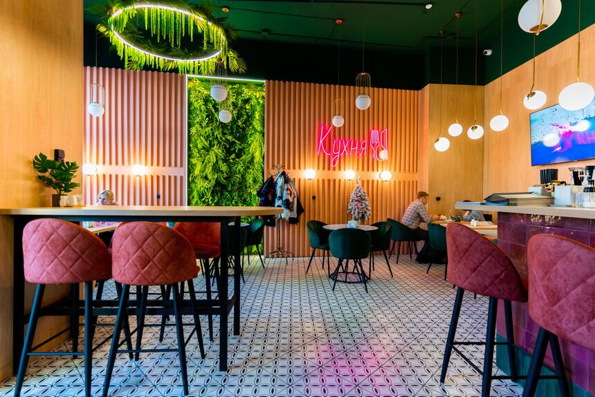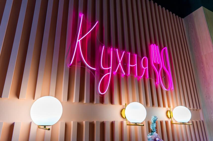 Первым объектом, который мы посетили стало необистро «Кухня» в доме «Волна».