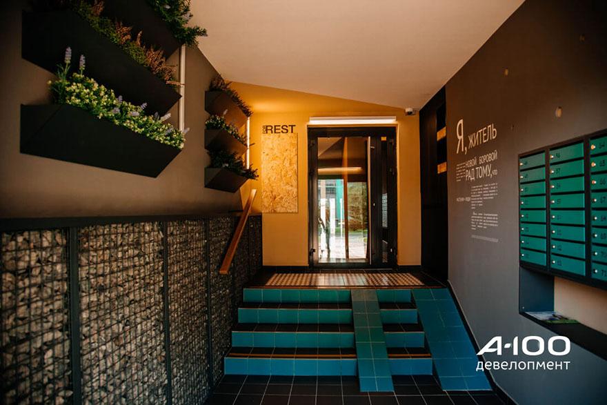 В домах будут проходные подъезды и лифты, а в холле — графика на стенах, чат-доски и полки для буккросcинга. Предусмотрены также «лапомойки» — комнаты общего пользования, где можно помыть лапы питомцам после прогулки.