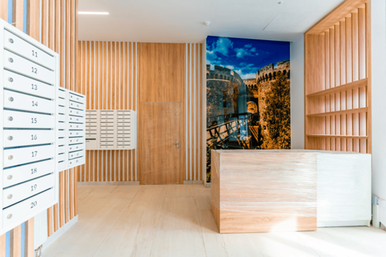 - Повышенный уровень комфорта и в местах общего пользования. Этажный коридор, ведущий в квартиры, имеет естественное освещение. Восемь окон расположены равномерно по всей его длине.