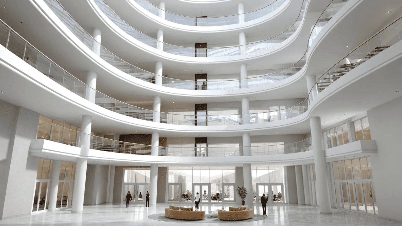 Интересная особенность дома «Континенталь» – центральный атриум. Вот как он будет выглядеть после завершения строительных и отделочных работ: