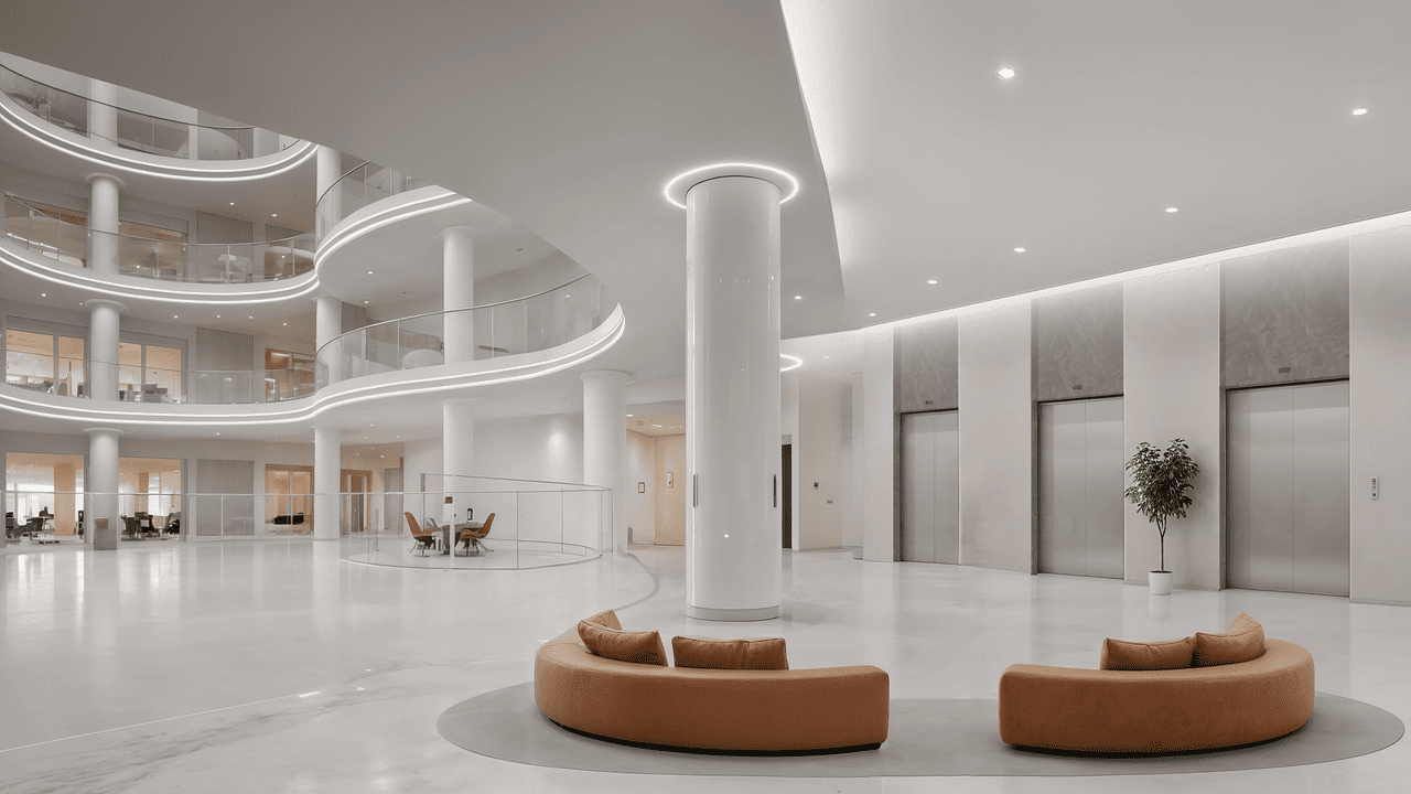 Восьмиэтажный центральный атриум и рекреационная зона на эксплуатируемой кровле (летние кафе, ландшафтный дизайн) создают идеальные условия для досуга и делового общения.