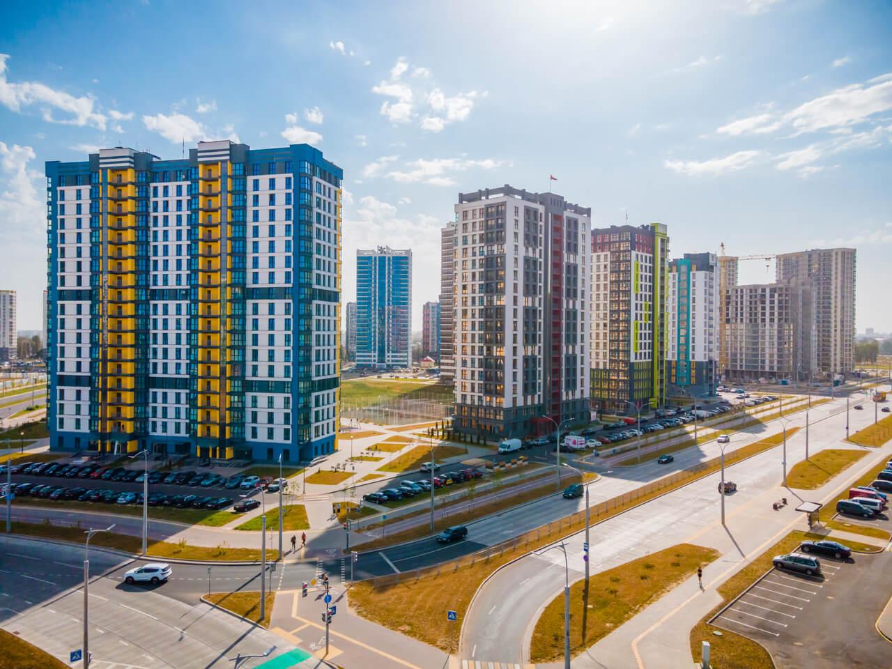 В большинстве домов установлены панорамные окна, обеспечивающие максимальный уровень инсоляции, и панорамные лифты, открывающие впечатляющие виды на многофункциональный комплекс и центр города (до проспекта Независимости – его главной магистрали – всего 10 минут езды).