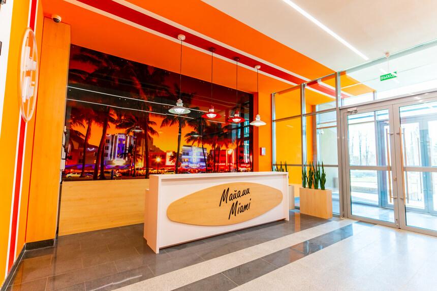 В престижном доме «Майами» 25 этажей, площадь апартаментов — от 27м2 до 74м2. Во всех помещениях матовые натяжные потолки, оборудованные эргономичными накладными светильниками. Двери комнат уже оснащены фурнитурой. Есть плинтусы, розетки и выключатели. Стены покрыты практичными обоями. Ламинирован пол.