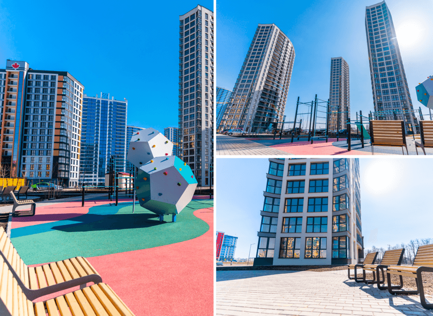 Второй выход откроет свои двери к парку — безопасному и зелёному месту отдыха для взрослых и детей, где не будет движения автомобилей. Можно спокойно отпускать ребёнка гулять одного!