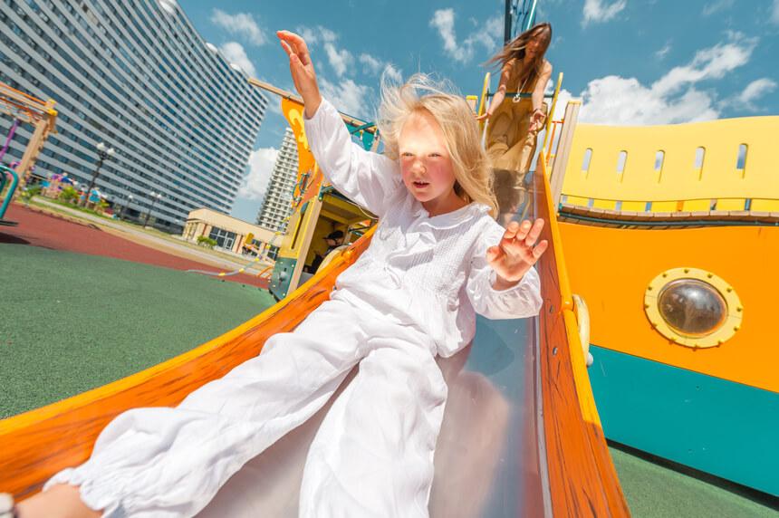 Здесь особенно понравится детям и подросткам. Обустроены не только красочные детские городки! Созданы площадки для занятий скейтбордингом, которые очень любят подростки.