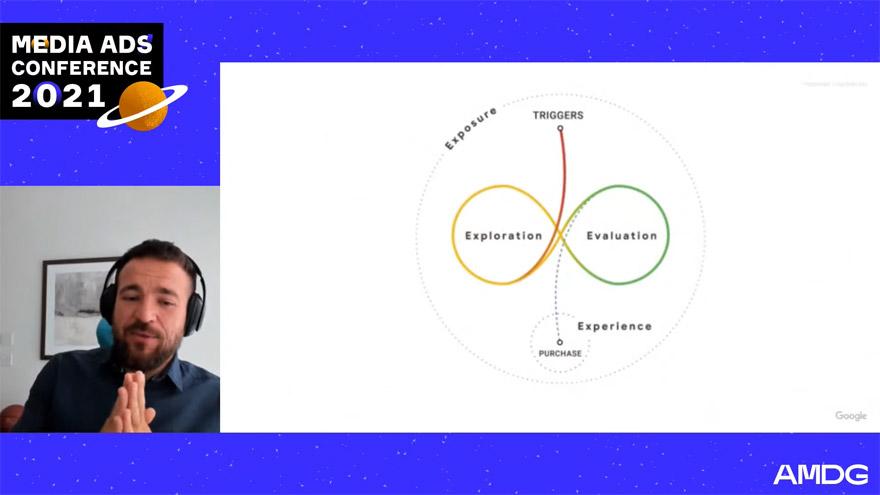 Изменилось представление Google и о воронке продаж. Теперь она превратилась в бесконечную восьмерку, на петлях которой пользователь исследует рынок и анализирует предложения. При этом к восьмерке он приходит только после триггерного события, например, появления необходимости что-то купить. И все это составляет пользовательский опыт, во время которого бренд постоянно контактирует с потенциальным потребителем.