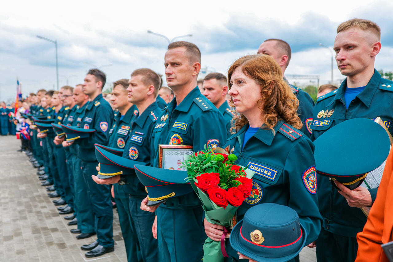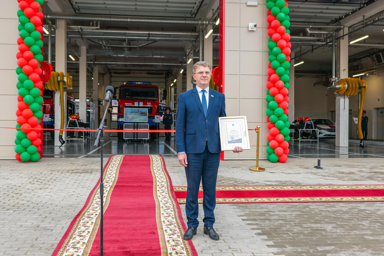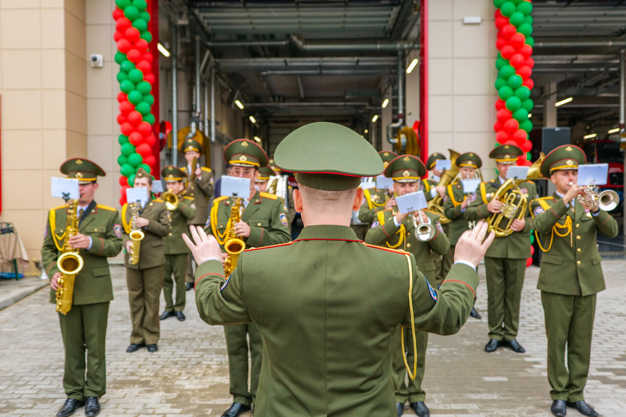 — Октябрьский — динамично развивающийся район, в котором ежегодно прирастает количество жителей. Поэтому было принято решение построить здесь пожарное депо. Это современное и прекрасное здание, я думаю, станет хорошим подспорьем для сотрудников МЧС, которые несут трудную службу и постоянно подвергаются опасности, — отметил председатель Мингорисполкома Владимир Кухарев.