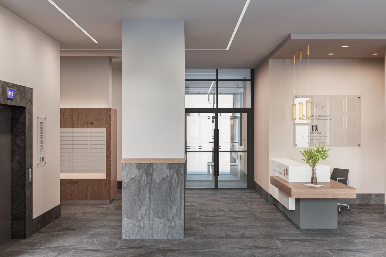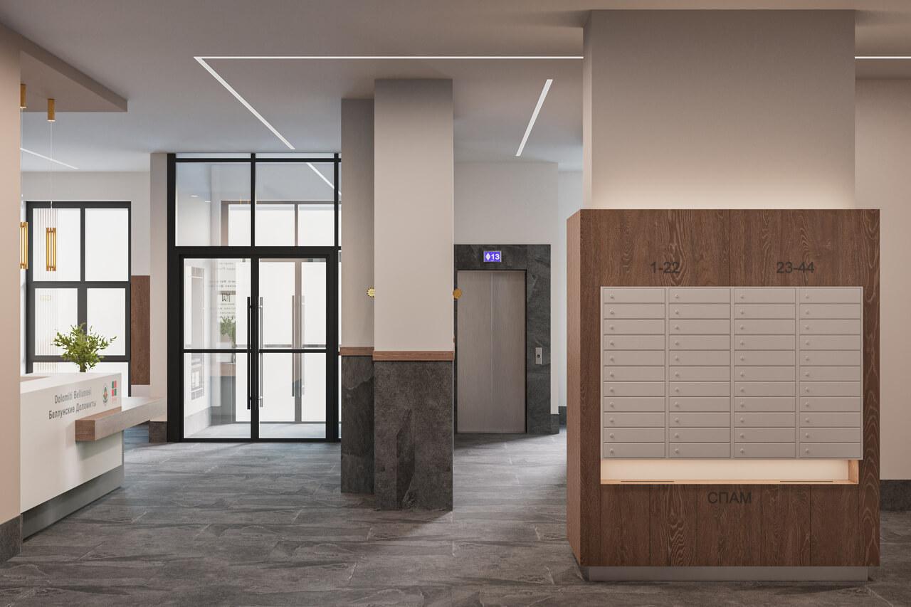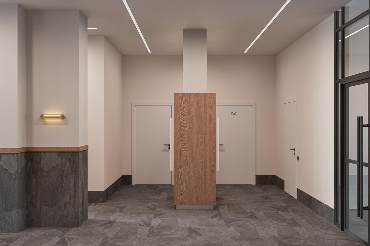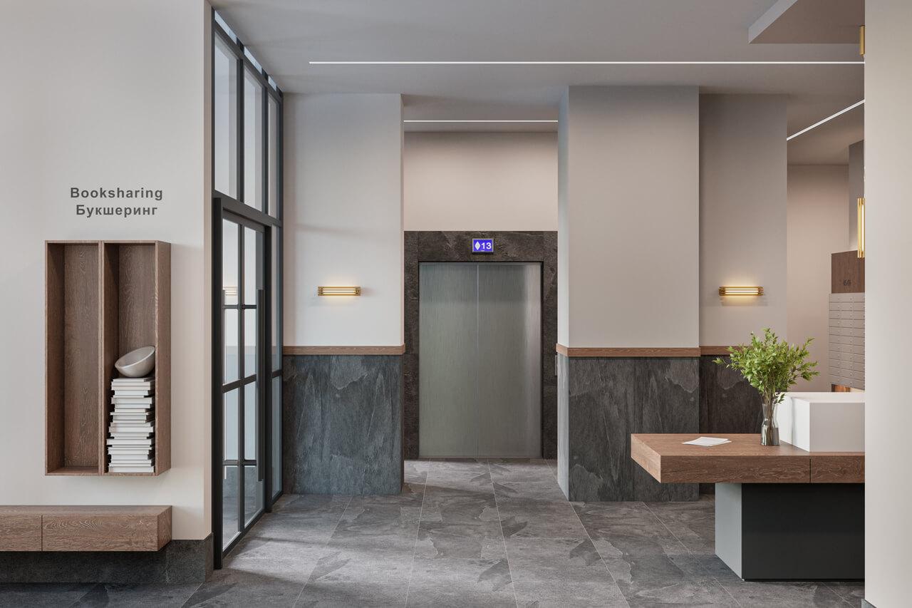 Просторные дизайнерские лобби с зоной отдыха: площадью более 60 м2, высота подвесных потолков лобби — более 3 м, ресепшн с рабочим местом для консьержа, санитарная комната с пеленальным столиком для удобства малышей и мам. В каждой секции предусмотрен байк-бокс для ценителей активного отдыха и велоспорта.