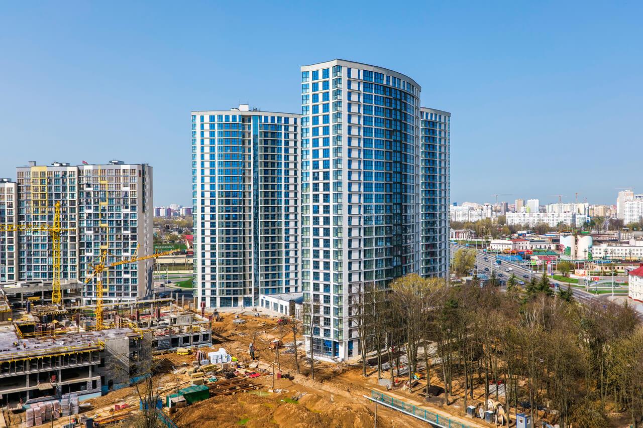 Количество этажей на самой высокой башней достигло 40! А запланировано 42 — 180 метров! – самое высокое здание в Беларуси. Две средние башни, расположенные по обе стороны от центральной, насчитывают по 20 этажей. Крайняя, расположенная ближе к Братской улице, уже полностью готова — 14 уровней. Пятая башня, расположенная со стороны проспекта Мира, достигла 8 этажей.