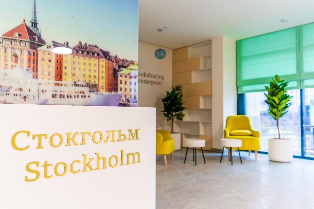 - дизайнерские лобби, где есть зоны отдыха для гостей, стойка консьержа, санитарная комната с пеленальным столиком и лапомойкой, байк–бокс для велосипедов и колясок, букшеринг.