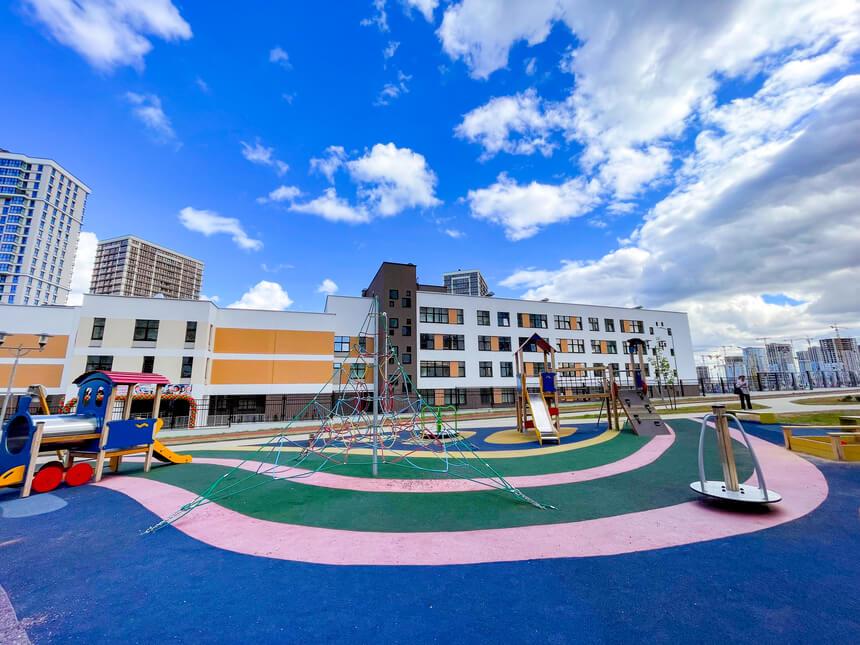 - на безопасной прилегающей территории расположены красочные детские городки и территории для воркаута