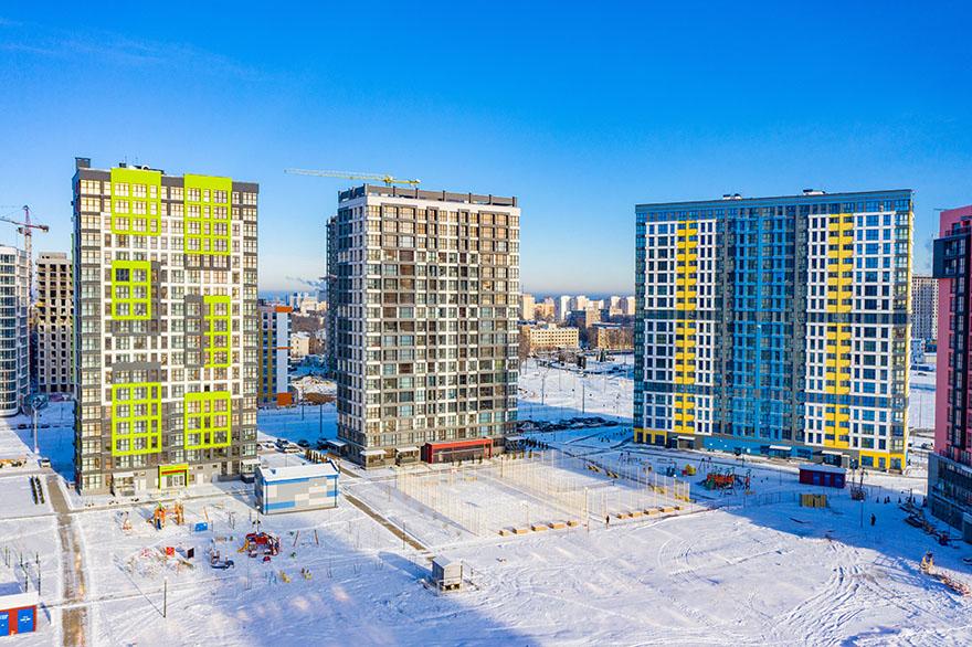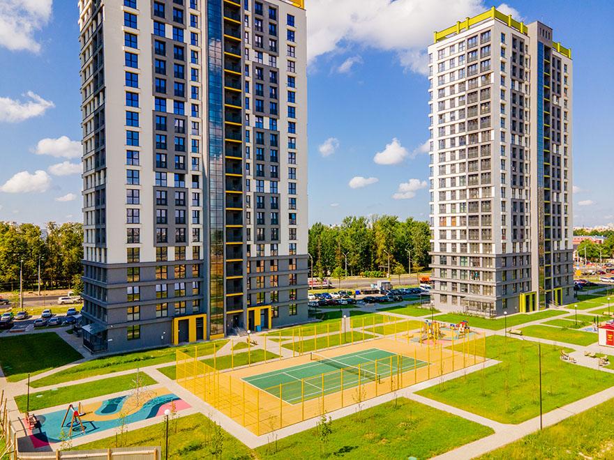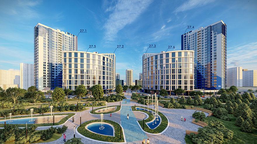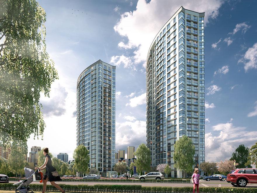 В этих 25-этажных новостройках вас ждёт европейская недвижимость площадью от 28 до 75 м² со свободными планировками, высокими потолками и панорамными окнами. Подняться на нужный этаж можно в пассажирском, грузовом или панорамном лифте, любуясь эстетикой современного квартала.