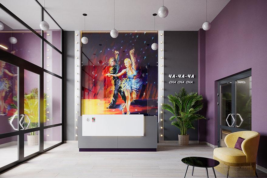 Фойе домов «Самба», «Румба» и «Ча-Ча-Ча» — это арт-территория, где вас и ваших гостей будет радовать красотой эксклюзивное лобби. Что мы видим? Стойка для консьержа, зона отдыха для гостей, санитарная комната с пеленальным столиком для малышей. Есть место для колясок и байк-боксы!