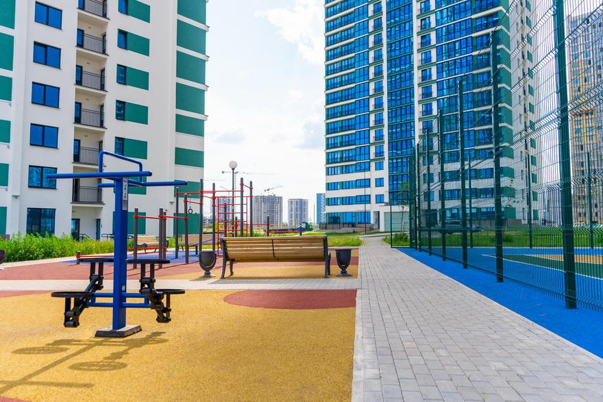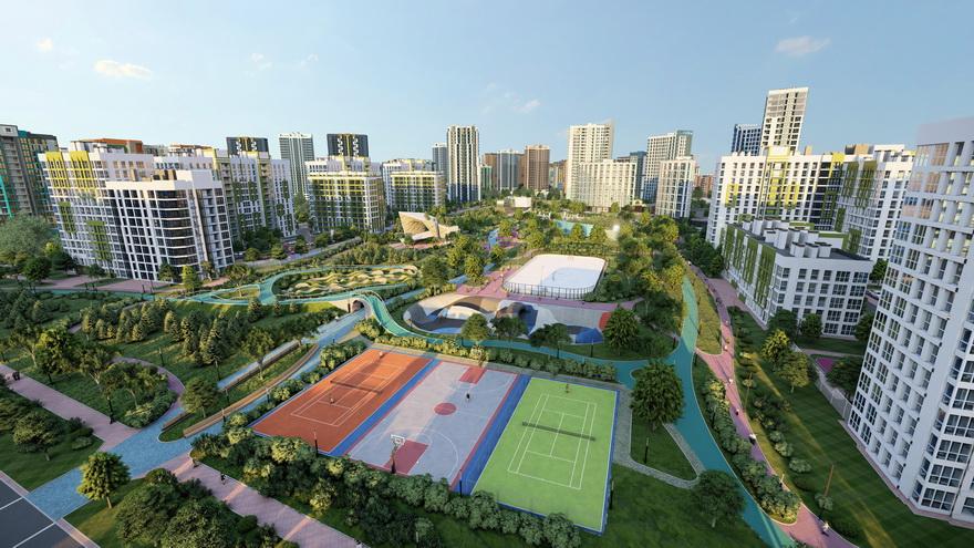 На территории каждого квартала – современные, яркие и безопасные спортивные и игровые площадки, а по всему комплексу пролегают велодорожки.