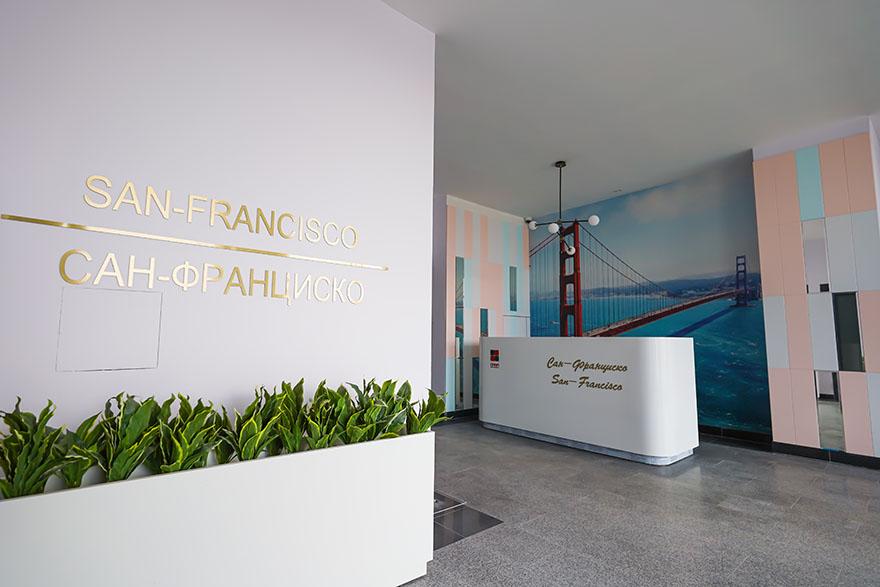 Все подъезды художественно оформлены, пока ждёшь лифт, глаз радуют невероятные пейзажи. До квартир со свободными планировками и панорамными окнами жильцов доставят комфортные лифты OTIS.