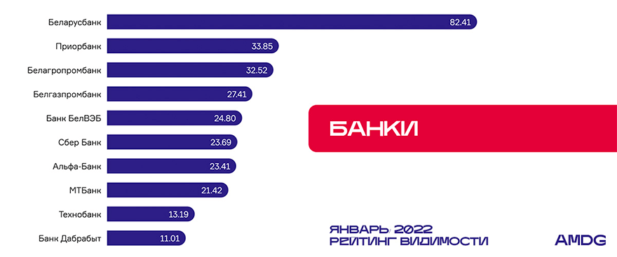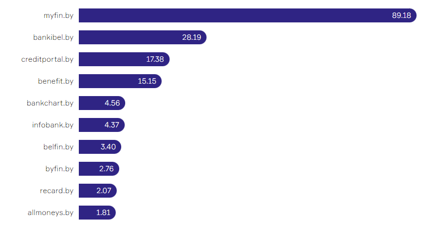Сбер Банк восстанавливает позиции после ребрендинга. Напомним, что в октябре прошлого года состоялся переход на новый домен, сайт претерпел изменения согласно новому фирменному стилю, что повлияло на его позиции в выдаче. Однако Сбер Банк стремится вернуться на свое место. В прошлом месяце в рейтинге видимости банк занимал 8-ю строку, теперь – 6-ю. Белагропромбанк и Белгазпромбанк убавили в показателях видимости 2,22% и 4,22% соответственно, но только Белагропромбанк потерял место в рейтинге и упал со 2-го на 3-е место.