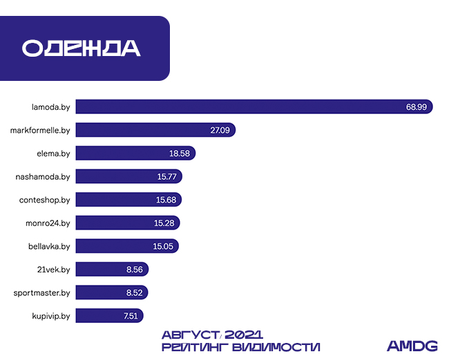 Это дало возможность другим сайтам подняться выше в ТОП-10 рейтинга: Nashamoda.by (+3 строки) и Bellavka.by (+2 позиции).