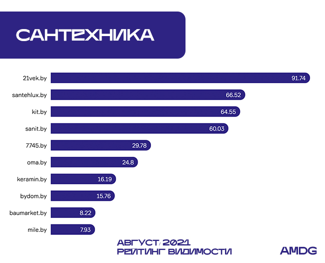 Santehlux.by и Kit.by вновь поменялись местами. Первый восстановил 2-е место в категории (+8,16%), а второй оказался на 3-м месте в результате крупного снижения (на -14,51%). В обоих случаях влияние на динамику оказал Яндекс.