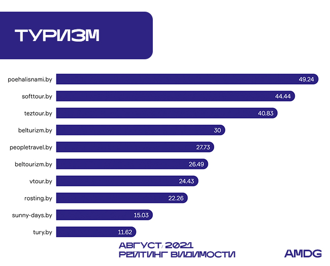 Так, Beltourizm.by перебрался на на две строки ниже, а Sunny-days.by на три: с 6-го на 9-е место, потеряв -13,89%.