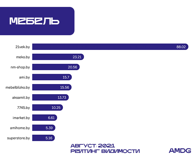 Сайт Mebelblizko.by выпал из ТОП-3 на 6-е место (-6,11%), тройку лидеров замыкает Nm-shop.by (+2,15%).